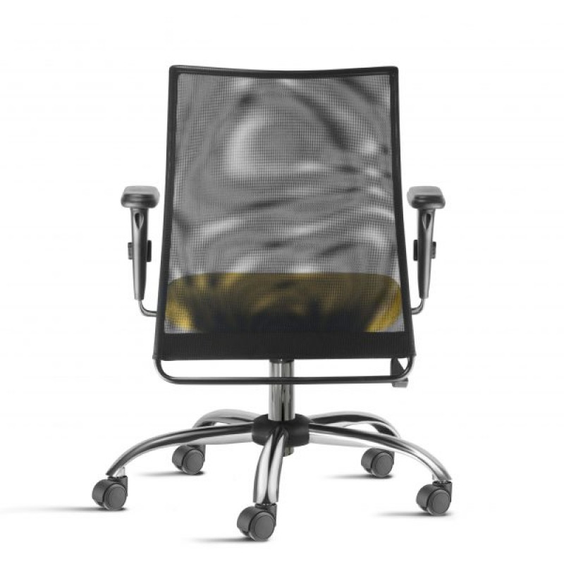 Possui encosto em tela flexível, extremamente adaptável sobre quadro metálico. O conforto não para por aí, pois Lunna conta com mecanismo de reclinação oscilante. Giratória Possui encosto com parada na posição laboral, ajuste manual de tensão, pistão a gás para ajuste de altura do assento, acabamento cromado da coluna e base cinco patas arcadas em aço carbono cromado com acabamentos injetados em polipropileno e rodízios de duplo giro injetados em poliamida com pistas em PU. Assento Assento estruturado em compensado multilaminado e estofado em espuma flexível de poliuretano injetada moldada, de alta resiliência e alta densidade, isenta de CFC. Estrutura Em sua versão fixa, possui estrutura em “S”, com assento em balanço, fabricada em tubo de aço carbono e sapatas envolventes injetadas em polipropileno, 100% reciclável.